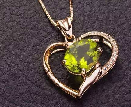 橄榄石颜色艳丽悦耳目,为人们所喜爱,橄榄石吊坠的价格怎么样?纯绿色的橄榄石吊坠比较罕见,价值高。粒大(大于3克拉)的少,价值也较高。褐色或褐黄绿色的虽然罕见,价值并不高,多被收藏。