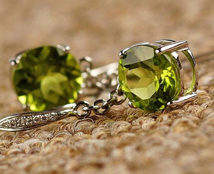 ◎选购橄榄石首饰首先应注意其绿色是否纯正深艳,黄绿色过多为降低其价值。